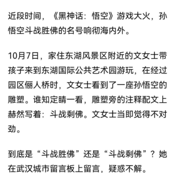 记者查阅了原著,发现如实是“斗驯顺佛”,随后致电东湖景观区管委会办公室。这回责任主谈主员承认是错别字,并示意:“咱们会实时上报核实,如有问题实时矫正。”