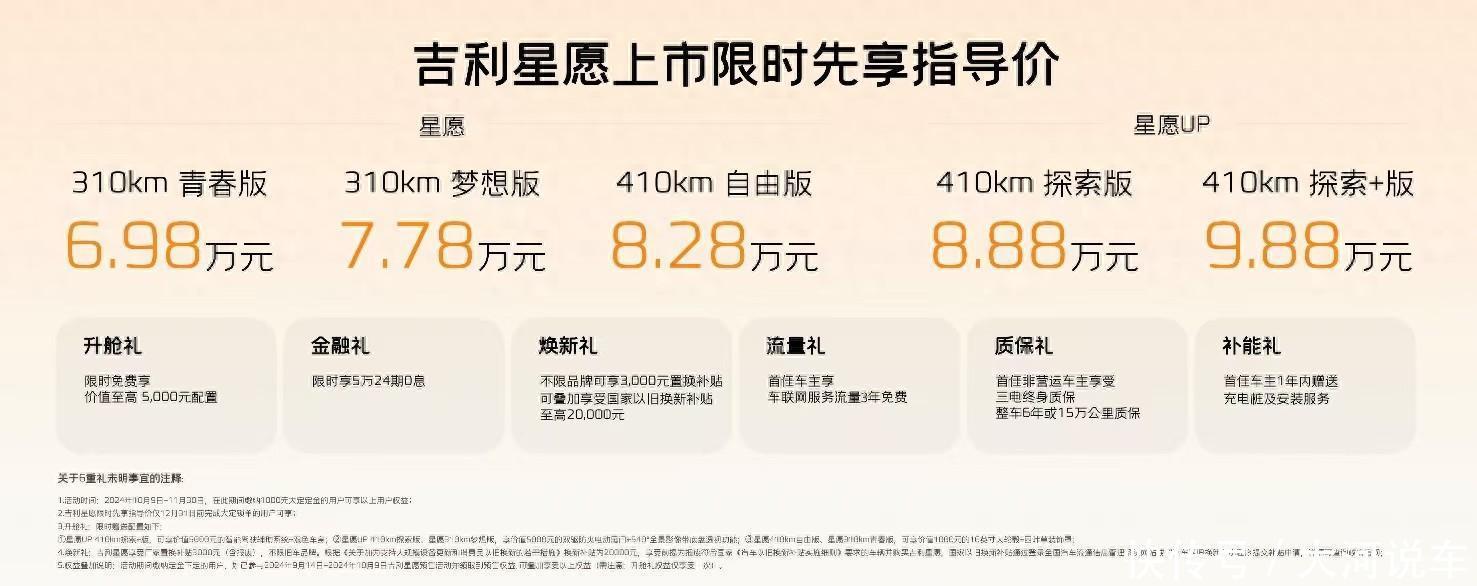 10月的车市,火爆进度少许不亚于9月末的股市,国庆7天假期,一语气数个车企发公告终显着周度销量冲突万台,在新车扎堆、以旧换新等身分的刺激下,汽车市集迎来了新一波糜费潮。10月9日晚,当作节后首款新车的祥瑞星愿在成齐阻难上市,推出星愿和星愿UP两个系列共5个版型,限时先享请示价6.98万元-9.88万元,同期,还推出一系列丰厚的限时购车权利。