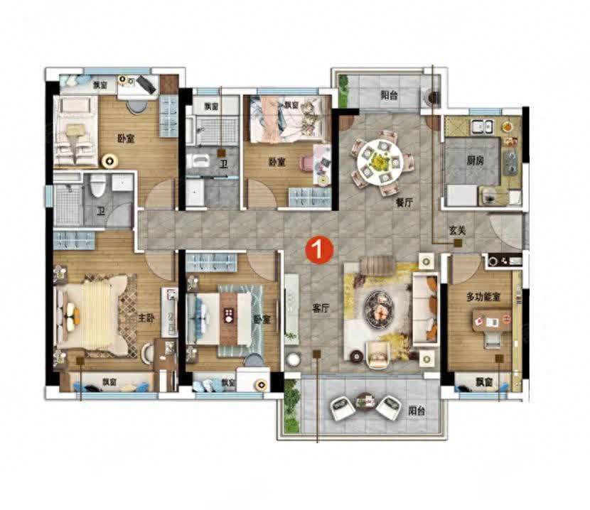 149.53㎡的空间里竟能推敲出5个卧室,单从这一建树不出丑出,此户型主打“实用”。不管是多孩家庭、三代同堂,亦或是念念留出一间手脚书斋、储物间,皆无需在“需求”与“空间”之间坚苦抉择,每个家庭成员皆能领有属于我方的玄妙小寰球,盛大居住毫无狭小之感。
