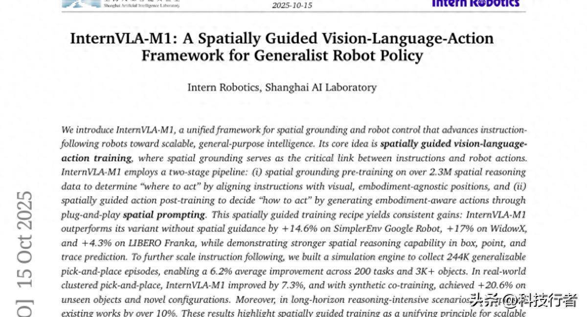 这项由上海东谈主工智能实验室Intern Robotics团队发表于2025年10月15日的商议,提倡了一个名为InternVLA-M1的斡旋视觉-言语-动作框架。有兴致深入了解的读者不错通过论文编号arXiv:2510.13778v1查询齐全论文。