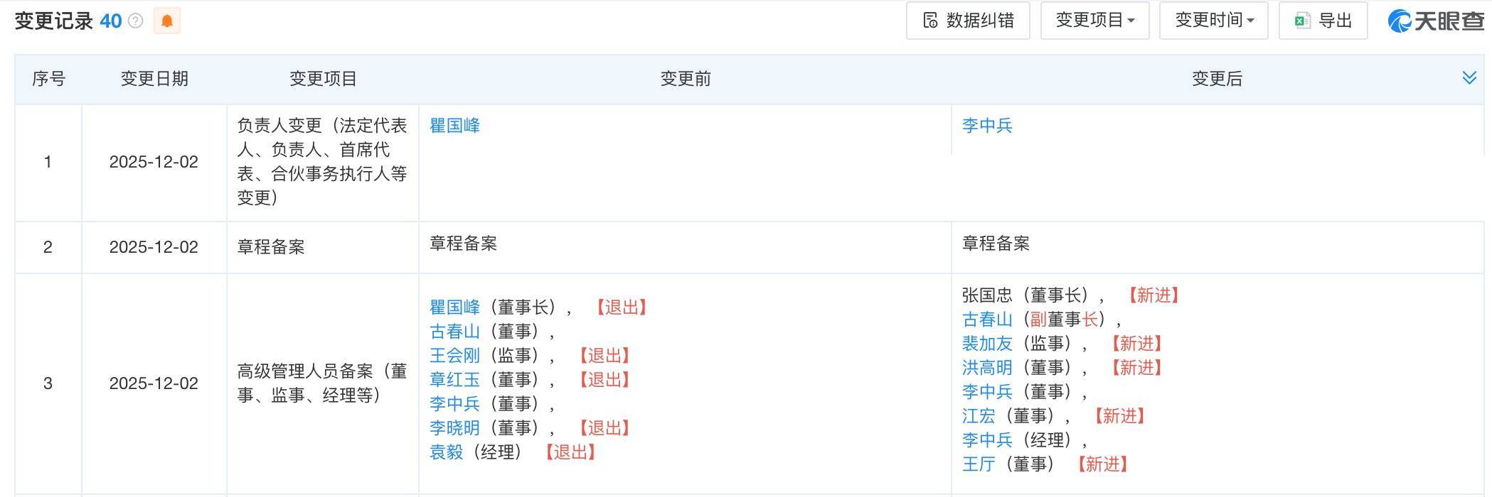 【大河财立方音信】12与4日世博体育,天眼查工商信息闪现,近日,芜湖奇达能源电板系统有限公司发生工商变更,瞿国峰卸任法定代表东说念主、董事长,由李中兵接任法定代表东说念主,张国忠接任董事长,同期,多位高管发生变更。